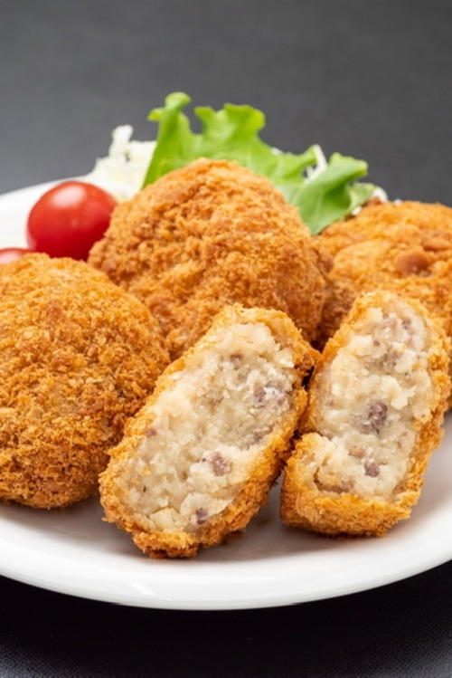 少ないとひっくり返す際にコロッケが破裂したり、温度管理がうまくいかず中身があふれてしまうことがあります。コロッケがしっかりと浸るくらいの量が望ましいです。